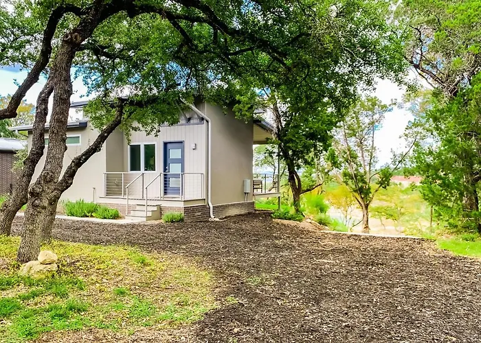 Tiny Home On Lake Travis de 37 m^2 est à 10 minutes en voiture de The Hills Country Club, et à moins de 10 minutes de Club de golf Lakeway Country Club. La villa propose des chambres avec un pupitre d'écriture, une cafetière/théière et un coin salon.